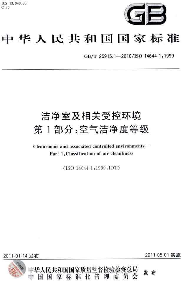 洁净室及相关受控环境第1部分:空气洁净度等级 GB/T25915.1-2010
